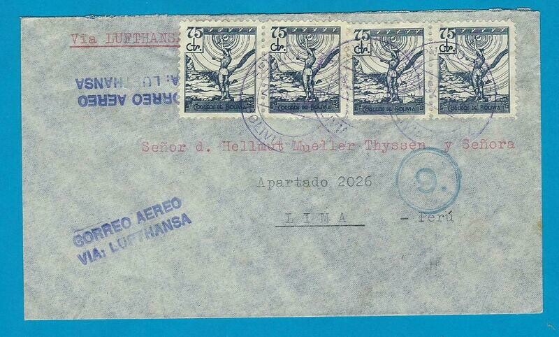 BOLIVIA air cover 1940 La Paz to Peru by Lufthansa