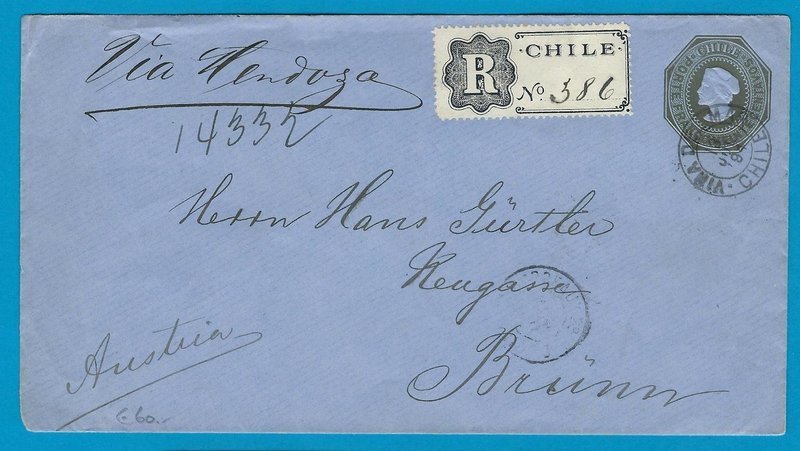 CHILE Registered postal envelope 1894 Viña del Mar to Austria