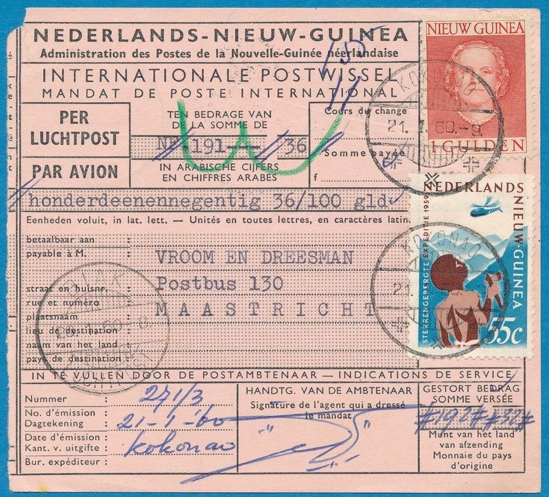 NETHERLANDS NEW GUINEA postal mandate 1960 Kokonao