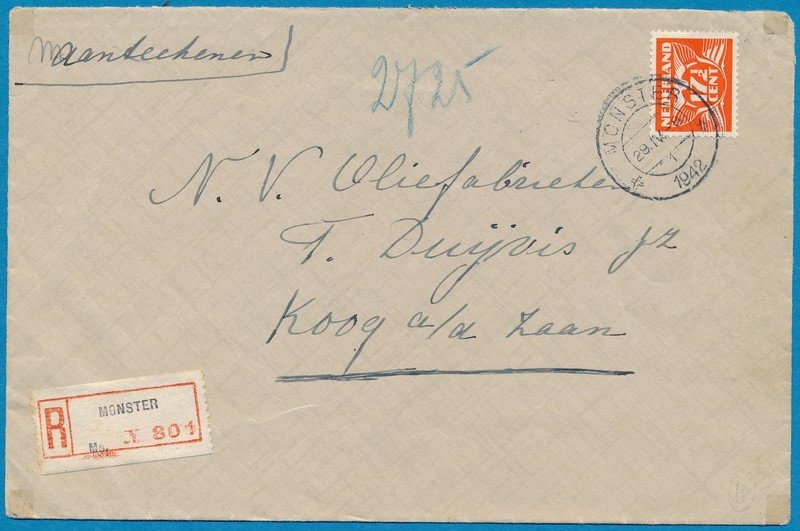 NEDERLAND R brief 1942 Monster naar Koog a/d Zaan